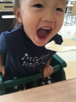 おいしいおいしいの合図(サイン) これ、いつまでやるのかな(^^)