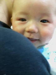 颯斗は、よく声を出すようになったんだけど、うるさいぐらい騒いでます 物を掴むことを覚えて、今日も、メリーを頭の真上に置いたら、それに触りたいみたいで。 でも届かないからか、大声で叫んでた