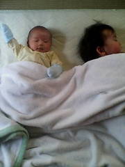 あやしてやろうと布団の中へ・・・ あやすつもりが・・ いつのまにか、一緒に寝てしまいます・・。 っうか・・颯斗『豆』みたい・・。