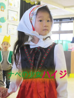 アルプスの少女ハイジが和訳された時の名前は『楓 かえで』です。 では、このハイジの本当の名前は何でしょう?? 正解は・・なべ家の少女『りこ』です(*^^*) 先日の私の休み・水曜日がお遊戯会の公開練習日だったので見に行っ […] 続きを読む »