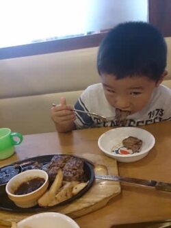 颯斗が帰りに「おちゃしよ~♪」と言うので、休憩がてらココス寄ってみた(^^) おちゃ、どころか、がっかりハンバーグ食べてるし(笑)