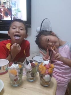 今日は4歳のお誕生日♪ りこ、おめでと~\(^-^)/ ケーキはいつも食べきれず残ってしまうので…お好みのアイスを買ってきて手作りパフェでお祝いしたよ☆ 見た目悪いけど(笑) とーっても美味しくいただきました!