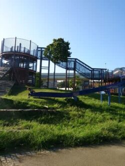 昼間は暑すぎて、夏休み全然公園は行ってあげなかったな~(^_^;) この時間からなら、日中よりはと思って来てみた(^^) まぁ、まだまだ暑いけど… 久々の公園\(^-^)/ 貸切状態で喜んで遊んでるよ♪