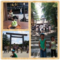 最終日はお伊勢参り~☆ とにかく暑かった…(*_*) 子供たちにはちょっと苦痛だったかもしれないけど、前半思う存分遊んだので我慢してもらって、伊勢神宮たくさん歩きました! 赤福氷、美味しかった~♪♪ まだ小さい颯斗と璃心 […] 続きを読む »