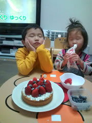 ケーキ完成☆ パパ早く帰ってこないかな~(*^_^*)