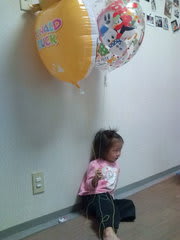 昨日ディズニーランドで買った風船。 朝からずーーーっと離さず持ってる(笑)