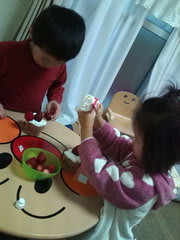 試作中(^-^) 今年は二人とも風邪ひいて今週やる予定だった友達とのクリスマスパーティーすべてキャンセル(T_T) 可哀想に… 少し早いけど時間があったから、ケーキ作ってます☆