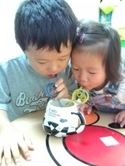 こんなイタズラして元気に遊んでたのに、今はふたりしてダウン… 颯斗は木曜日から熱で、璃心は今朝突然40度超え(*_*) 間違えなく移ったね(ノ_・。) ふたりともグッタリ~ 早く元気になぁれ!