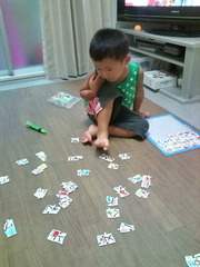 昨日は珍しく一日中お家!(夏休み初めてかも(笑)!?) まぁ、あの大雨じゃ仕方なかったね(x_x;) 璃心が寝た時にしかできないパズルに夢中の颯斗。 カタカナが読めるようになったよ♪