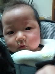 風邪っ引きの璃心。 咳き込んでる途中にクシャミしたら、鼻から母乳が出ちゃった(笑) 超苦しそうで、可哀想だけど、この時ばかりは笑ってしまった( ´艸`)ゴメンネ