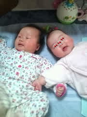 誕生日は約2週間違いで、こちらも同級生(^o^) 璃心の方が遅く生まれたのに、1キロ近くデカかったよ(笑) お互いわかっているのか?向かい合うと何度も微笑みあってた(=⌒ー⌒=) 可愛かったな~♪