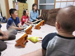 せっかく買ったんですが・・マンション暮らしな我が家ではちょっとうるさすぎたので実家で太鼓の達人。 4人揃って、本気で太鼓を叩く音は、脅威ですよ^^; 快斗もやりたそうに見ていました。 すぐに出来るようになるよ(*^^*)