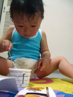 今日のお風呂上り。。 おいおい・・(汗) お前の中で、もう季節は夏か?? 肌着にオムツで、アイスかい!! いっちょまえに・・ 目閉じて・・『うっまっ♪』だって(爆) そっちもよこせ・・とか。 うまいのはわかったからさぁ~ […] 続きを読む »