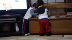 お前ら二人が揃っているのに・・ こんなに静かなのは何故だぁ? この後姿・・。 あは。きっと何か悪戯してます(笑) 見に行くと・・案の定。紙をはるか飛び越え、イスに直接お絵かき中でした♪ まっ。それぐらいなら・・よし!とし […] 続きを読む »
