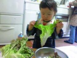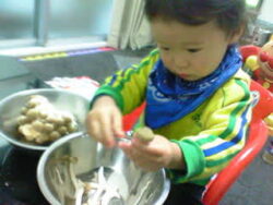 颯斗さん、またまたお手伝いしてくれてます! まずは、お馴染みのキノコをほぐしてます(^-^)