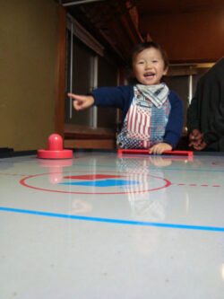 実家の2階は、子供達の勝負の場。 その一室には、ゲームセンター顔負けの、テーブルホッケーが設置されています(笑) もちろん!あの空気の上を滑る感覚は健在です。 昨日も・・勝負だぁ!! と。この顔(笑) でもね。颯斗・・ま […] 続きを読む »