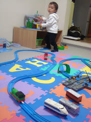 本当・・ 電車と車が大好きです♪ って・・・明日はお客様が来るんだから、違う部屋で線路つなげぇ~