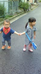 今日は甚平を着て、お祭りデート♪ どんなにおしゃれな服きても、かっこいい服できめても、颯斗にはもれなく『よだれ掛け』ついてます(・_・;)