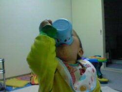 何でも自分でやりたがる颯斗くんは、コップもひとりで持って飲めるようになりました! たまに勢い余って、目や鼻に入り、溺れてることあるけど(笑) しかも、いつも一気!! 男らしい姿です☆