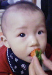 昨日、初めてイチゴを食べました! 甘酸っぱいから食べないと思ったのに喜んでかぶりついてた。 最近はバナナ、みかん、イチゴのような固さのものは、つぶさなくても食べるようになったよ(^^)v