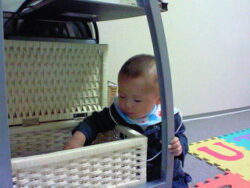 珍しくひとりでおとなしく遊んでると思ってたら、やっぱりイタズラ中か( ̄□ ̄;)! いつの間に、かごの蓋開けれるようになったの!? また置場所考えなきゃ…