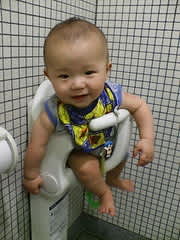 初めて、こうゆうのに座ってみました!! コレ、トイレの中なんだけど・・・(;¬_¬) 颯斗は、ご機嫌♪ 気に入ったみたいで、なかなか降りてくれなかった!