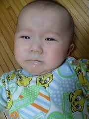 昨日、下の歯が2本生えてきてるのに気付きました! ずっと口をパクパクさせてたから、ちょうど歯の写真が撮れると思ったのに、カメラを向けた途端、拒否!! しかも「絶対見せてやんない!」って顔してるし・・・
