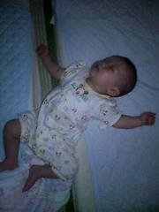 寝相わるすぎ・・・ 自分の布団と、私の布団の間に落ちちゃってるよ(^_^;