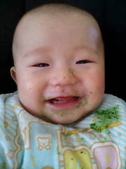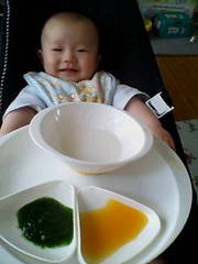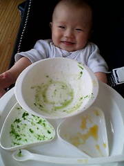 完食!! 食べてるときは、すっごいご機嫌o(^o^)o 大体このあと、少し暴れて母乳のんだら、寝ちゃうのが毎日の習慣です。 幸せなヤツ・・(*^_^*)