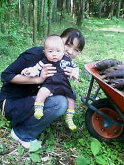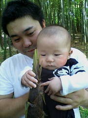 山に入って、大人の肩ぐらいまで育った筍がいっぱい!! 、颯斗は興味があるみたいw(゜o゜)w
