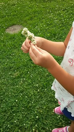 父兄弟がザリガニ釣りの間、 娘ちゃんとシロツメ草で冠作り。 指輪も作った♪ かわいい~(ノ≧▽≦)ノ